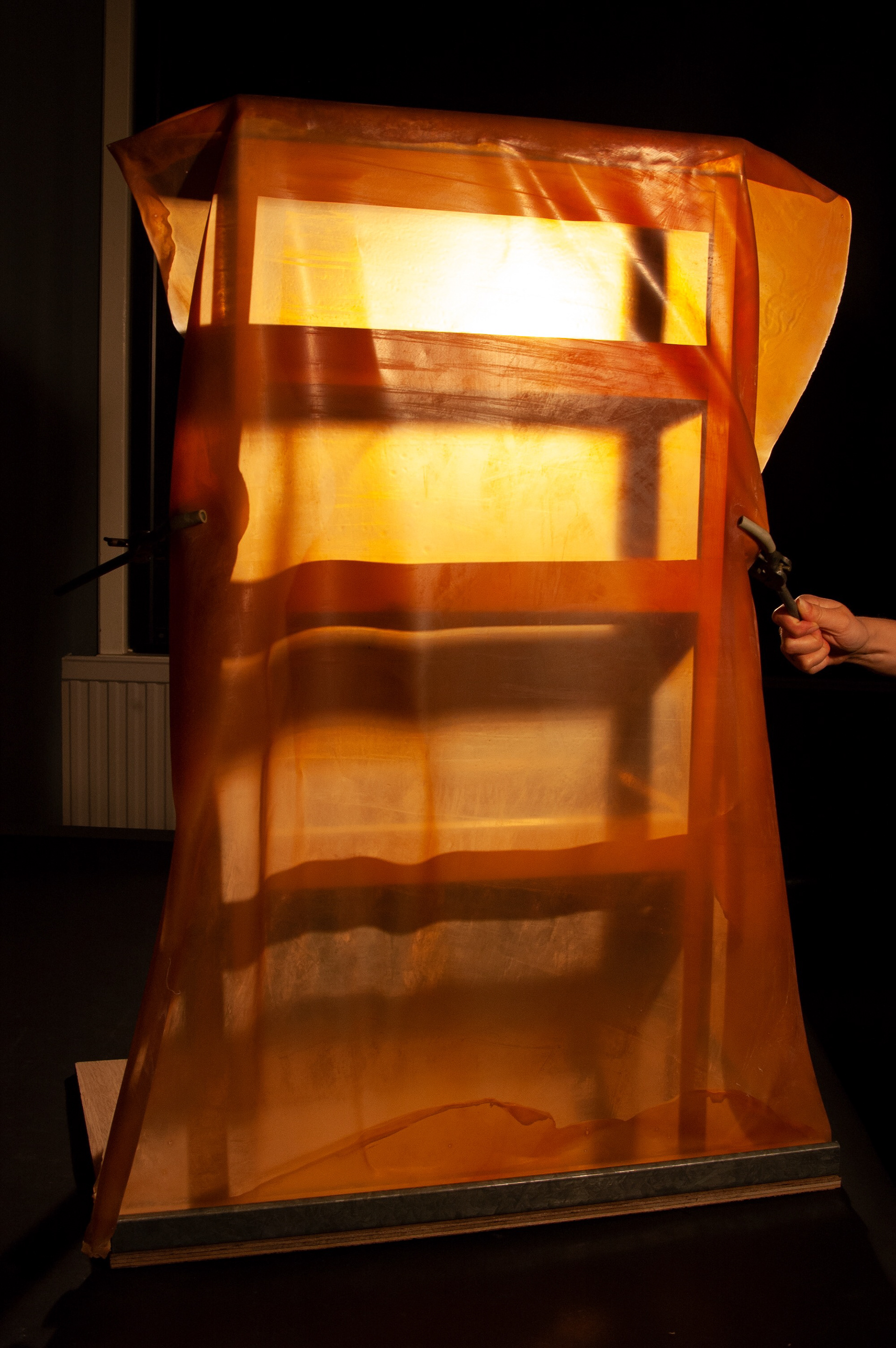 Samantha Price is a looming presence in the INKit factory. She has a private entrance and her office is placed above the factory from where she can see everything. It became clear that the idea of cleanliness and staying clean will become central to my project and the character of Samantha Price. This idea developed into an almost sci-fi feature of the INKit factory a latex skin covering the factory departments and machinery keeping the polluted air out.